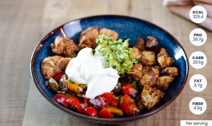 Divide roasted potatoes and chicken between two bowls. Top each with salsa and