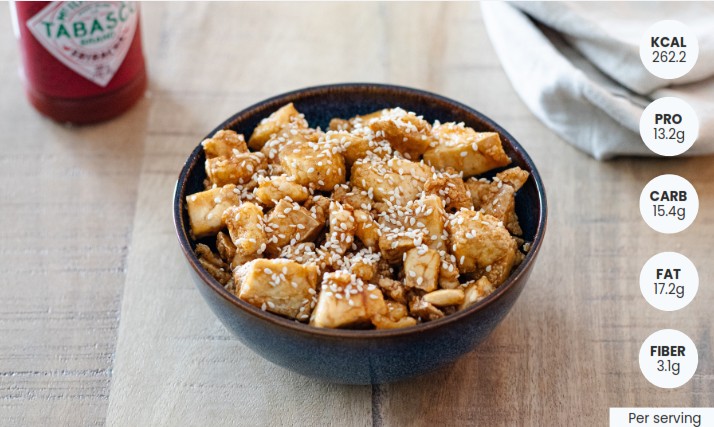Preheat your air fryer to 200°C (390°F). Place the tofu cubes in the air fryer basket