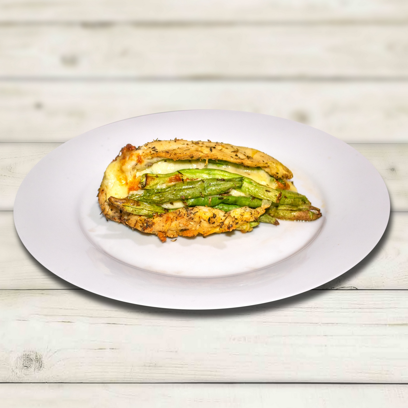 Stuff the chicken breasts with mozzarella slices and beans; secure with toothpicks.