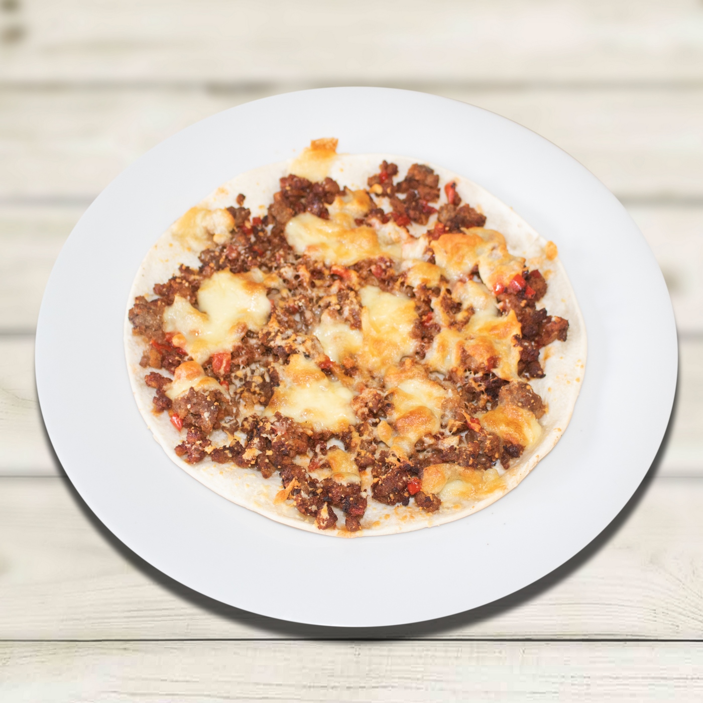 - Spoon the meat mixture over the cheese and place the baking sheet in the oven to bake for 5-6 minutes or until the cheese melts.