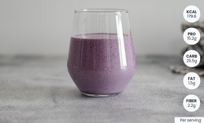 Combine the blueberries, banana, Greek yogurt, and almond milk in a blender.