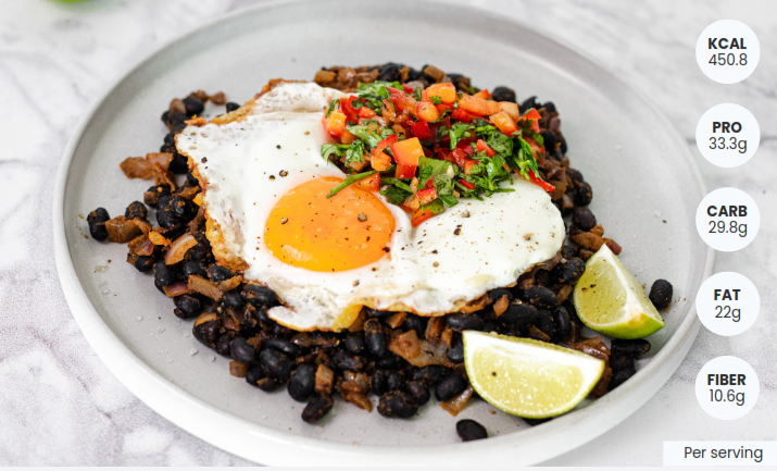 Serve the smoky black beans as a base. Top with the Parmesan-crusted eggs. Add