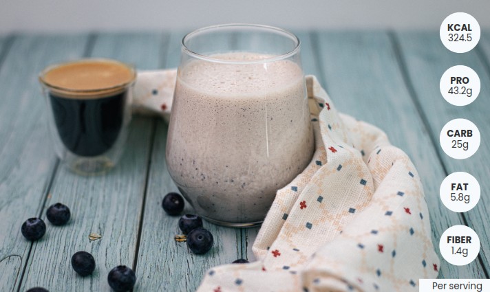 First, make an espresso. Next, add all of the ingredients to a blender and blend