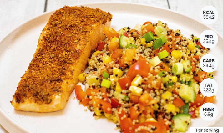 First, season the salmon with cajun rub and then cook it in an air fryer or oven at