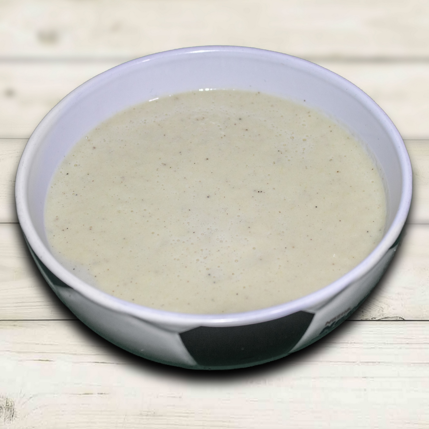 Transfer the cooled cauliflower mixture into a mixer jar and blend until you achieve a smooth consistency. Transfer the mixture into a serving bowl and top it up with grated cheese and nutmeg powder and add the remaining cauliflower. Serve!