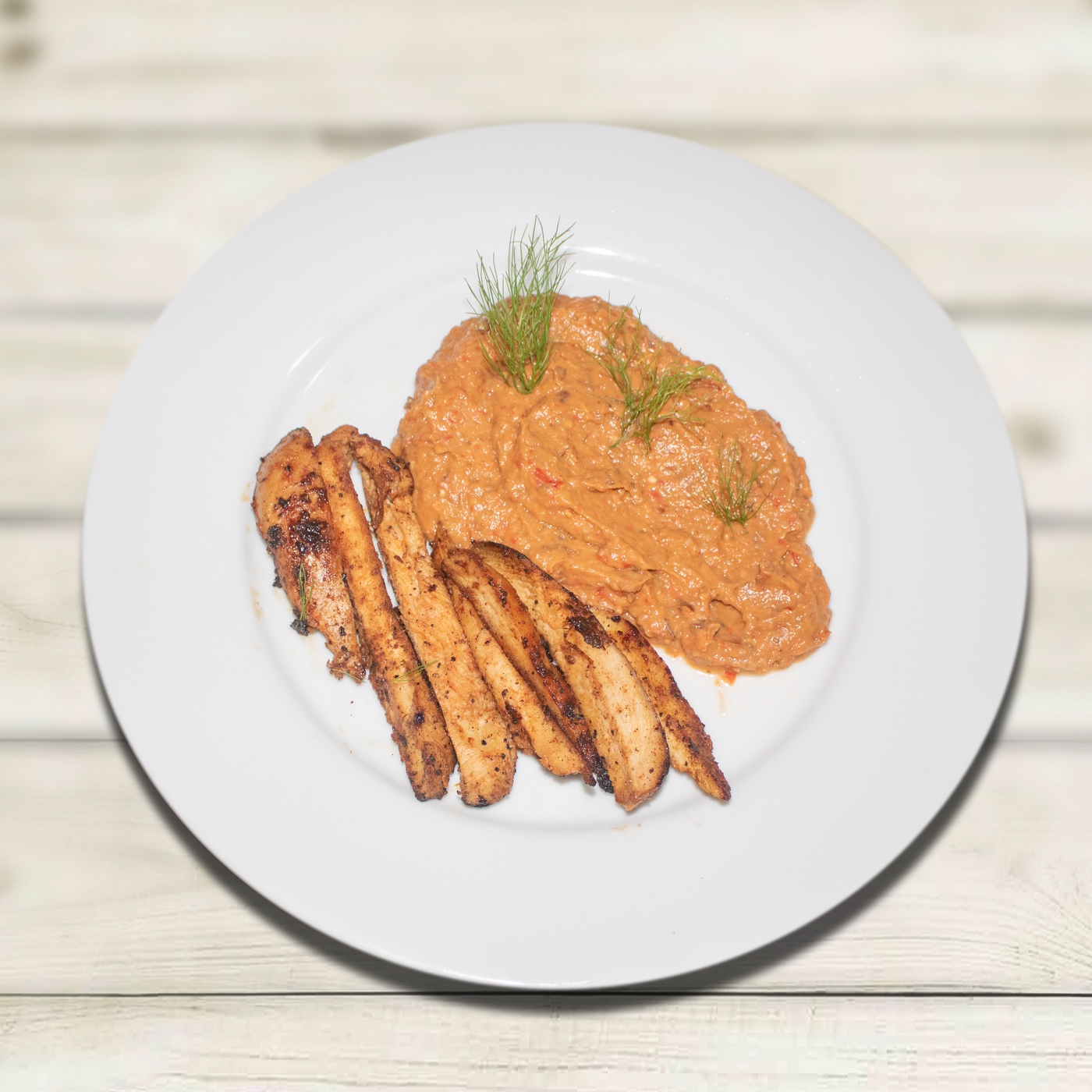 CHICKEN EGGPLANT RED PEPPER BABA GANOUSH