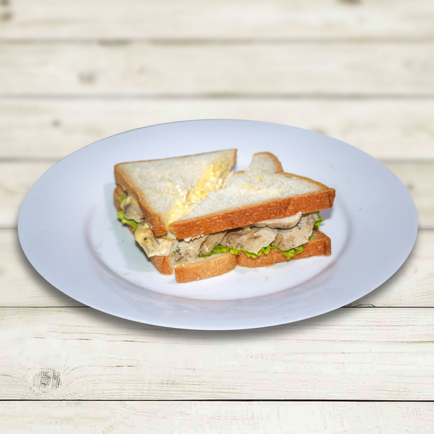 Prepare the sandwich spread by mixing the mayonnaise and blue cheese dressing. Spread on one side of each slice of the bread slices. Top one slice bread with lettuce then sliced chicken, chopped hardboiled egg. Season the sandwich with salt and pepper. Add another slice of bread and serve with the remaining blue cheese spread on the side.