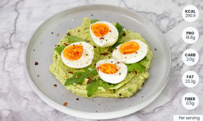 Spread the avocado cream cheese mixture evenly on a plate. Slice the boiled