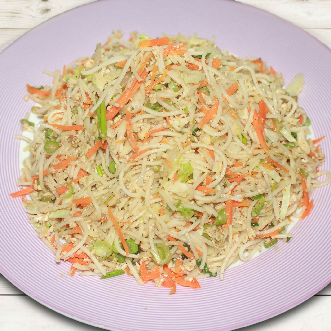 - Then add the onions, beans and green chillies in the same pan and sauté for a minute or two. Add the carrots, cabbage, salt, pepper powder, soy sauce. Stir-fry the ingredients for some time. Once done, add the boiled noodles and break the eggs into the pan. Mix well and cook for a few minutes. If you like smoky flavours, stir the veggies mix on a high flame.