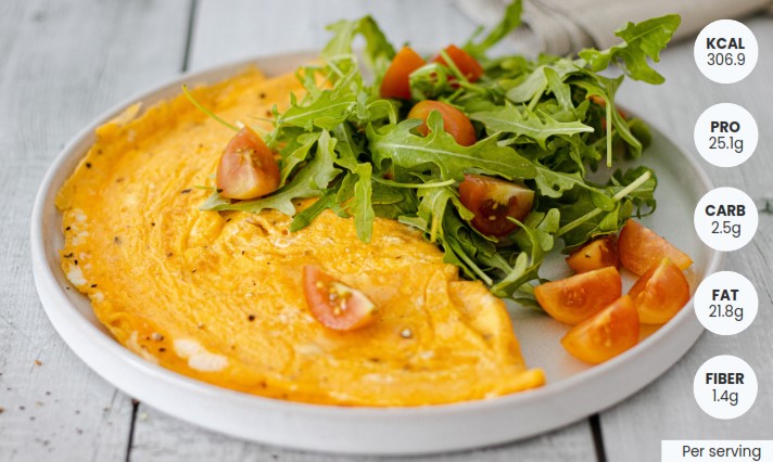 Gently fold one side of the omelette over the other, creating a half-moon shape.