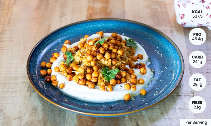 Spoon the eggs onto the yogurt. Scatter over the crispy chickpeas. Finish with