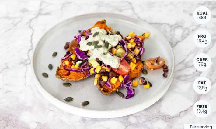 While the potatoes are roasting, combine black beans, corn, avocado, cherry