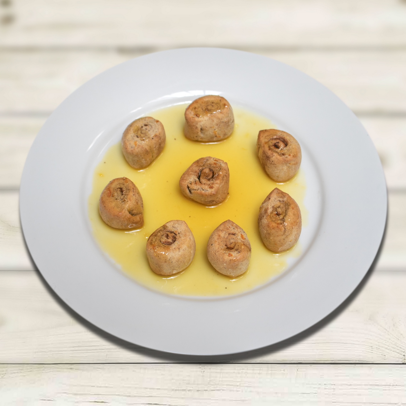 - Tuck the ends in and use a knife to slice the roll into pieces.