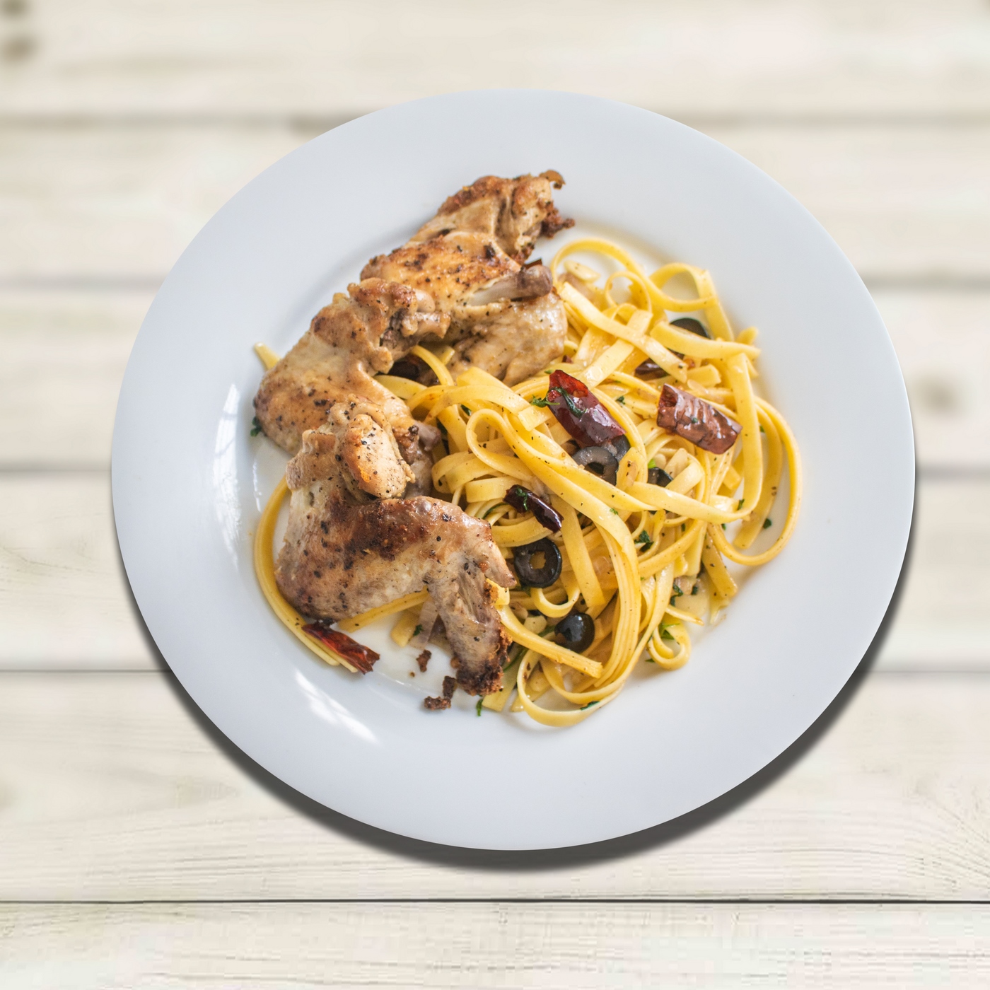 PASTA AGLIO OLIO WITH AIRFRIED CHICKEN WINGS