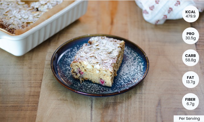 Top evenly with almond flakes and chopped white chocolate. Bake for 20 minutes,