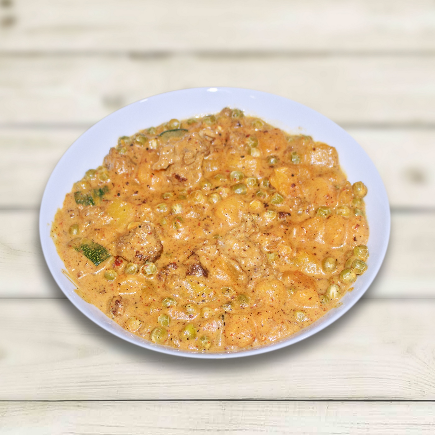 - Add the curry paste and stir-fry for a few minutes until fragrant. Add coconut cream, fish sauce, pumpkin and green pea, and stir-fry for 4-6 minutes or until heated through. Return the beef to the wok and stir-fry until warmed through.
