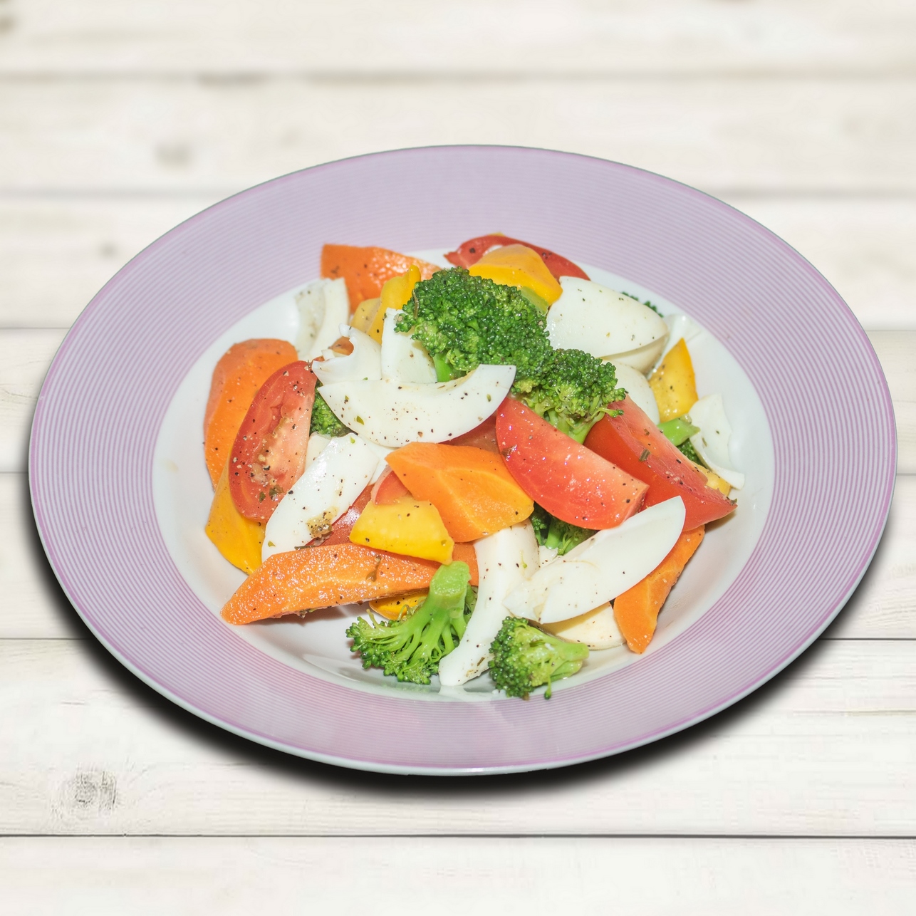 - Cut the boiled eggs in to wedges and mix with the vegetables.