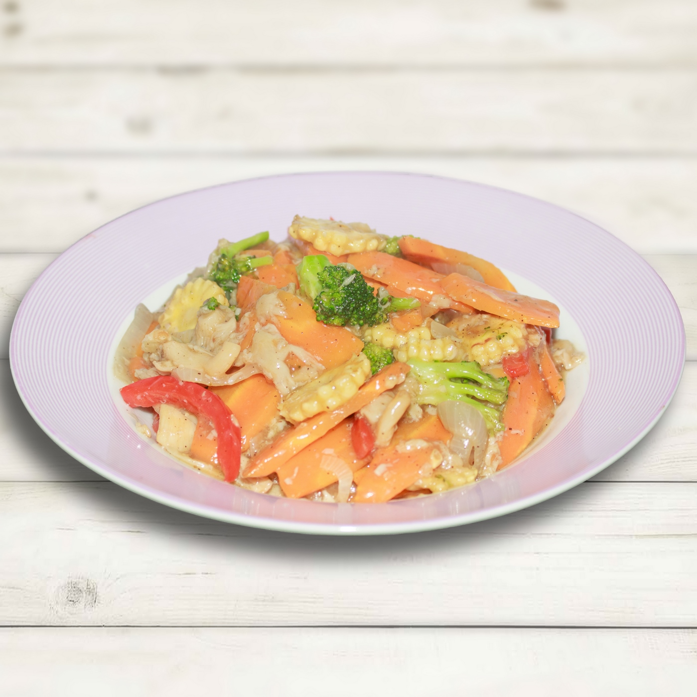 - 5 pieces young corn – each cut diagonally into 2