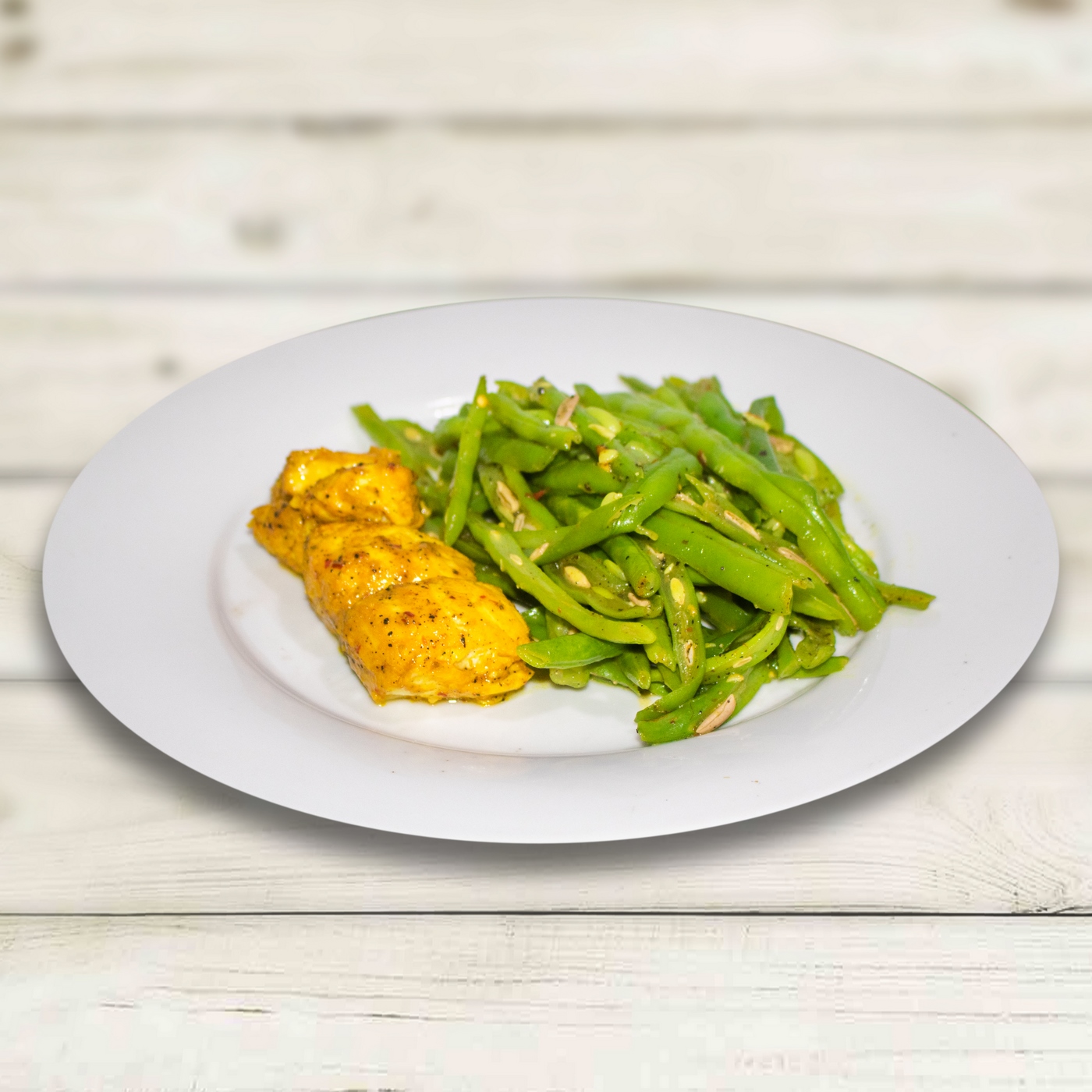 - In the same pan add the blanched beans and season with salt and pepper